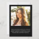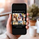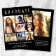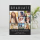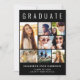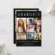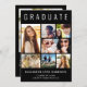 Elegantens moderna svarta studenten-kungörelse för att fira student med "STUDENT" överst i stor vit typografi, en sjudisk fotokollage och hans eller hennes namn, klassår och skola i modern vit typografi. Lägg till ytterligare ett foto och ett anpassningsbar på baksidan.