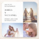 Modern fotokollage sparar det pappra underlägg datumet med en enkel, minimalistisk layout med tre foton och dina bröllop-detaljer i svart lämnat justerad text över en vit bakgrund. Dessa eleganter sparar datumet en snyggt till ett trendig bröllop.