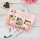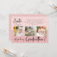 Modern fotokollage Godmor frieri kort. Design innehåller 3 bilder av baby, typografiskt skript, kommer du att vara min Godmor på rosa och pastellbakgrund för rosa.