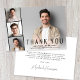 Minimalt modernt tillkännagivande i studenten och tack för ditt platta kort med student överlagrad med tre mindre kvadratfoton och "Tack", deras namn, skolår och klassår i enkel typografi. På motsatt sida lägger du till ett tack för personligen och gradens namn i ett namnteckning skript.