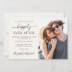 Modern ljuskräm med bröllop spara datum-meddelande som innehåller ditt foto och "Lyckligtvis någonsin efter" i en blandning av enkel typografi och ett skript för chic. Anpassa din spara datuminformation och lägg till namnen i ett namnteckning skript. På baksidan gås med ditt namn och bröllop-datum ihop av ett hjärta.