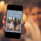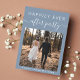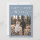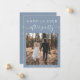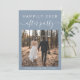 Modern blått elopement eller ett privat bröllop-meddelande med en mottagningsinbjudan. Framsidan har ditt foto och "Lyckligtvis allt efter Party" i vit typografi och ett vitt skript med chic med dekorationer. På baksidan anpassar du ditt meddelande och informationen om party eller mottagningsinbjudan och lägger till namn i ett namnteckning skript.