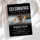 Ett modernt firande i livets begravningstillkännagivande med stor djärv text med en kombination av kalligrafi-typografi, ett foto av din älskade som blandas in i bakgrunden med användan av övertäckningar och en enkel minnesmall som är enkel att anpassa med dina egna detaljer.