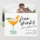 Spara datumkorten för det roligt paret som inte kan vänta med att fira med familj och vänner i bröllop. Lustigt gratis drycker (och vi är gifta sig!) färglös cocktaildesign är personlig med dina bröllop-detaljer och din förlovning på baksidan.