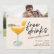 Spara datumkorten för det roligt paret som inte kan vänta med att fira med familj och vänner i bröllop. Lustigt gratis drycker (och vi är gifta sig!) färglös cocktaildesign är personlig med dina bröllop-detaljer och din förlovning på baksidan.