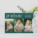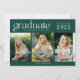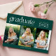 Fira högskolan studenten med detta mörk grönt tre fotomoderna studenten-annonskort. Anpassa med tre högre foton, namn och namn i deras skola. Den här klassen av 2025 studenten-annonskort återgår till att samordna grönt på baksidan och är perfekt för studenten i högskolan för en kille eller flicka.