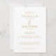 En klassisk guld-serif-typografi-bröllopsinbjudan med bröllop-foto på baksidan. Byt ut exempelfotot mot ett eget foto av bröllop. Finns i utskrift, som digital nedladdning, eller båda.