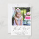 Modern tacksamhet för att du har fått hennes födelsedagsfest med foto och "Tack" i ett skript för contemporary av elegant med hjärtslag. Anpassa med sitt första namn och evenemangsdatumet i enkel typografi. På baksidan lägger du till ytterligare ett foto, hennes anpassade tackmeddelande och hennes namn i ett namnteckning skript.