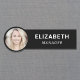 Modern foto-ID svart namn bricka. Ladda upp medarbetarens foto och lägg till deras namn och titel i enkel vit typografi.