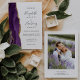 Den lämnat kant i eleganten i den moderna bröllopsinbjudan har en lila vattenfärgsagat gräns som trimmas med faux guld glitter. Med anpassadet kombineras grått-handskrift, tryckplåt och kursivt typsnitt på vit bakgrund. Ersätt enkelt exempelbilden på baksidan med lodräts foto och lägg till en kort text med ytterligare information (t.ex. webbplatsens URL).