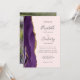 Den lämnat kant i eleganten i den moderna bröllopsinbjudan har en lila vattenfärgsagat gräns som trimmas med faux guld glitter. I anpassadet kombineras grått-handskrift med kol, kopparplåt och kursivt typsnitt på rosa. Byt enkelt ut exempelbilden på baksidan mot lodräts foto.