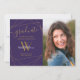 Det här studenten-annonskortet i elegant med ett foto- och monogramkort i början av brev namn och det geometriska mönster i guld på lilans bakgrund ser verkligen som är trevligt för ge till familj och vänner och som tillkännager en kommande elegant studenten dag. Underbaren sak här är att du kan anpassa det genom att lägga till namn, inledning och text. Fotografi © Storytree Studios, Stanford, CA
