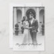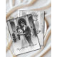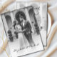 Ett enkelt foto med ett modernt elegant-skript som tillkännager namn överst. Fotot har enkelt ändrats till ett eget foto, precis som fotot på baksidan. Båda fotona har ett filter som gör att bilden ser svart och vit ut. Texten på baksidan ändras lätt för dig själv.