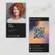 A sleek vertical business card design that combines personality and professionalism. The front showcases a profile photo with clean typography, while the back features a soft gradient background with a scannable QR code and essential contact details. Perfect for creatives, entrepreneurs, and professionals who want a stylish, modern way to connect and make a memorable impression.