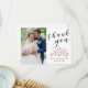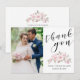 Modern Photo Rosa ros Blommigt Black Script Bröllo Tack Kort