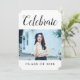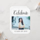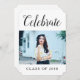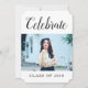Modern fotoinbjudan med Studentfest med en ny och enkel fotomalldesign i vitt. Lägg till en foto- och studentfest-information som du vill anpassa. Bakgrunden färg på baksidan av inbjudan kan ändras för att komplettera bilden eller för att lägga till en skola i färg.