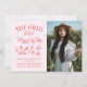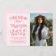Modern Pink and White Stripe Photo Graduation Meddelande