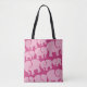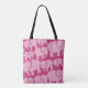 Modern unique pattern with light pink checked elephants following trunk to tail across bright pink background.