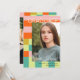Announce the graduation of your daughter with this trendy color blocks graduation announcement card personalized with two photos of your daughter, one on each side. The background has modern color blocks and stripes in soft pink, strong orange, teal, and chartreuse.