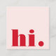 Stand out with this modern square business card featuring bold typography and a striking pink and red palette. The oversized “hi.” greeting adds personality, while the clean back layout makes it ideal for graphic designers, creative professionals, or anyone who loves a minimalist, high-impact aesthetic. Fully customizable with your contact info.