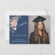 Modern Pink Roses Script Graduation Photo Tack Kort