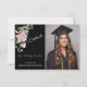 Modern Pink Roses Script Graduation Photo Tack Kort