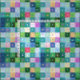 De moderna pixelblocksdekorfärgerna färg i skuggor av grönt, teal, gult och rosa gör att en ny, uppdaterad land-dekorfärg ser ut som stora fyrkanter på ungefär 1,5 tum på vardera sidan