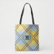 Modern Plaid Tartan Jeans Monogram Script Namn Tote Bag