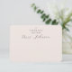 Ett chic och minimalistiskt tackkort från den blivande bruden. Denna platta kortdesign har mjuka rosa nyanser, ren typografi och elegant skript som framhäver “Den framtida fru” — ett perfekt sätt att uttrycka tacksamhet efter en bröllopsfest, förlovningsfest eller möhippa. Personifiera med brudens namn och kombinera med matchande inbjudningar, skyltar och mer från Minimal Modern Bridal Shower-kollektionen.