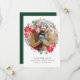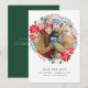 En festlig och modern konstjul sparar datumkortet. Två buketter med röda poinsettias placeras på en grönsak och bär. Utandningen kramar fotot. Ett speciellt vitt lagrar försäkrar att ditt foto passar perfekt in i andedräkten. Toppen är enkel att lägga till och anpassa malltexten. Baksidan av det sparade datumkortet är mörk grönt. Ytterligare information om bröllop finns på baksidan. Säg mig (jag heter Nellie) om du vill ha några koordinerande objekt.