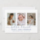 Det som gör detta födelsemärke speciellt är att det finns ett foto av baby ensam, baby och ny mamma, baby och ny pappa, förutom ett annat foto av baby på baksidan med födelsestatistik. Lägg till en modern skripttyp och ge vänner och familj en bild av den nya familjen, med totalt 4 foton. Byt ut platshållarfoton mot egna foton som passar in.