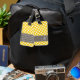 Resa i stil med en gigantisk utformning med gult och vita prickar. Lägg till ditt namn eller monogram på framsidan och annan information på baksidan.