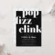 Moderna och minimalistiska inbjudningar till förlovningsfester har chicen svart och vit formatering med "pop fizz clink" i överdimensionerade vita återplansbokstäver. Anpassa med din förlovning firande-information under. Inbjudan går tillbaka till en mönster av färgade stjärnor i svart på vitt.