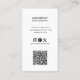 Visa en professionell i en snyggt som visas ram bredvid tydliga kontaktuppgifter, medieikoner i social och en skannerbar QR-kod som länkar till en online- eller kontaktsida. Den här moderna, minimala layouten är lätt att läsa och perfekt för fotografer, hårfrisörer, konstnärer, skönhetsalonger och mode-stilister som söker ett elegant, sofistikerat kort som konverterar. All text, typsnitt och färg kan redigeras.