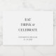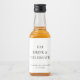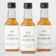 Enkla moderna etiketter för miniatyrflaskor med "Ät Drick & Fira," era namn och datum för bröllopet i elegant typografi som presenter till er bröllopsfest.