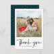 Trendigt och modernt turkos och vita prickar med handskrivna script foto tackkort.