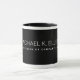 En modern och svart kaffepersonlig i mugg med eget namn och eget yrke eller företag i namn