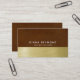 Ett modernt kontaktkort för att presentera sig själv med elegans på framsidan: två färg-bakgrunder (bruna och faux guld) med eget namn och yrke, baksida: linjer av text (affärsverk, namn, mobila, e-post och adress) på åldras-brunt bakgrunden