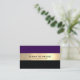 Snyggt kontaktkort för att befordra dig själv med elegans... framsida: stort faux guld, lila och svart rand med eget namn och yrke; baksida: linjer av text (företag namn, mobila, e-post och adress) på mörkens lila bakgrund.