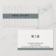 Ett modernt kort för vit professionell med enbart grundläggande information... ditt namn ('unica one' font stil) på ett grått rand med anpassningsbar ockupation (datorsystemanalytiker), ett mönster av initialer och adress, e-post och mobil..