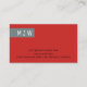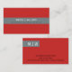 Ett rött kort med endast grundläggande professionell... ditt namn ('unica one' font stil) på ett grått rand med anpassningsbar ockupation (datorsystemanalytiker), initialer och adress, e-post och mobil..