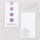 En modern utformning av affärskortet för lodrät för designers i insida eller dekoratorer i insida. Framsidan har fyra minimalistiska fyrkanter i olika nyanser av en färg. På kvadraten i grund visas ditt monogram och ditt namn och yrke finns nedan. På baksidan visas kontaktuppgifterna på ett tydligt och lättläst sätt i professionell. Färg på de fyra fyrkanterna kan vara personlig genom att ändra färg i färg i bakgrunden. Denna moderna och professionell utformning är perfekt för designers i insida, men den kommer också att fungera för designers i mode, stilister, bloggare eller målare och färgbutiker. Den här designen användor en minimalistisk strategi för att representera ditt företag med stil och klass.