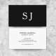 En ren och enkel utformning av affärskortet med en solid svart bakgrund på framsidan med modern vit typografi för initialer. Kortets baksida är helt vit med enkel svart typografi som du lätt kan anpassa.