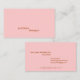 Unikt minimalistiskt formspråk. Dessa moderna och professionella rosa visitkort är essensen av elegans. Designens enkelhet och minimalism låter dina professionella detaljer sticka ut utan onödiga distraktioner. Den rosa nyansen tillför ett lager av sofistikering som lämnar ett outplånligt intryck. Kvaliteten på dessa kort ger en professionell, snygg look och känsla som matchar din företagsimage. Smidig och bekväm onlineköpprocess, som säkerställer att dina kort bara är ett klick bort från att tillföra din professionella karisma.