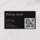 Affärskortet Modern Professionell Black White Minimal Script. Modern svart och vit design. Funktioner namnteckning handskrivet teckensnitt. Qr-koden kan ersättas med en logotyp. Anpassningsbarna finns på trullc@gmail.com