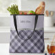 Carry your essentials in style with this sophisticated purple plaid tote bag. This design features a striking contrast between a soft lavender top and a rich, multi-toned purple plaid bottom. A sleek metallic silver divider adds a touch of modern luxury, making it more than just a standard tote—it’s a fashion statement. Durable and versatile, this bag is perfect for daily commutes, a stylish gym bag, or as a chic carry-on for your next flight. The front features a customizable name template (shown as "MELISSA") in a clean serif font. Its spacious design ensures you have room for everything from a laptop to travel essentials while maintaining a polished aesthetic.
