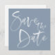 Modern Push Calligraphy-skript Dusty Blue Bröllop Spara Datumet