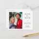 Ett foto av chic och snyggt sparar det datum vykortet är enkelt att anpassa med bild, QR CODE på webbplatsen för bröllop och information på båda sidor!
