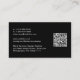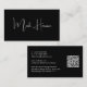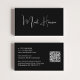 Make a bold, modern impression with this sleek minimalist business card featuring a signature-style name on one side and clean, professional contact details on the other. The crisp white text pops against a deep black background, creating a sophisticated, high-contrast design that exudes confidence and style. Perfect for creative professionals, designers, photographers, entrepreneurs, freelancers and agencies, this elegant layout includes space for your name, website, social handles, and contact info. Input your website to create a custom QR code for instant access to your portfolio, booking page, or digital business card, creating a modern networking essential that’s as stylish as it is functional.