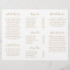 Modern och professionell faux guld trifold broschyr flygare med enkel och minimal design med ditt namn i ett skript för elegant och contemporary sans serif-teckensnitt. Mallen innehåller flera uppdelade sektioner för dina tjänster i en minimalistisk layout. Baksidan har din kontaktinformation och valfri QR-kod. Om du vill kan QR-koden tas bort i verktyg för designredigering. Insidan innehåller avsnitt för företagsinformation och en pris lista.